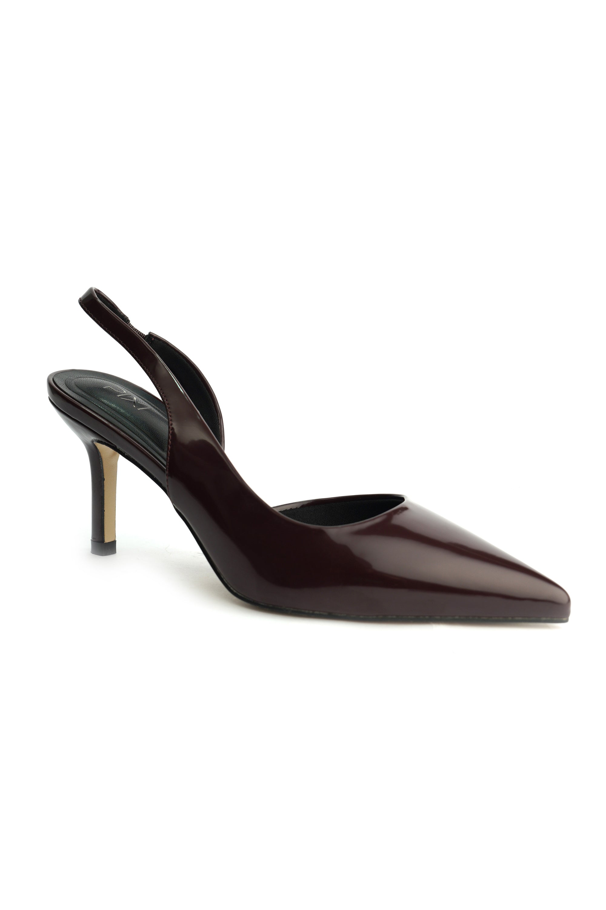 Code No.:01-5519 Slingback Pumps Ankle Strap , Stiletto Mid Heel Close Pointed Toe, vernee leather , heel measures around cm