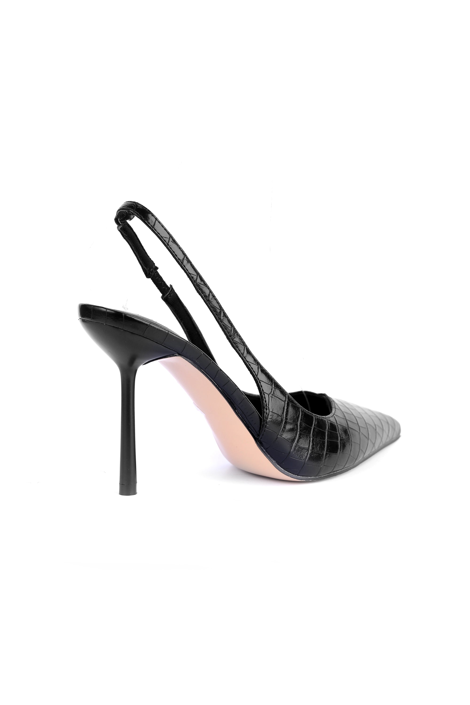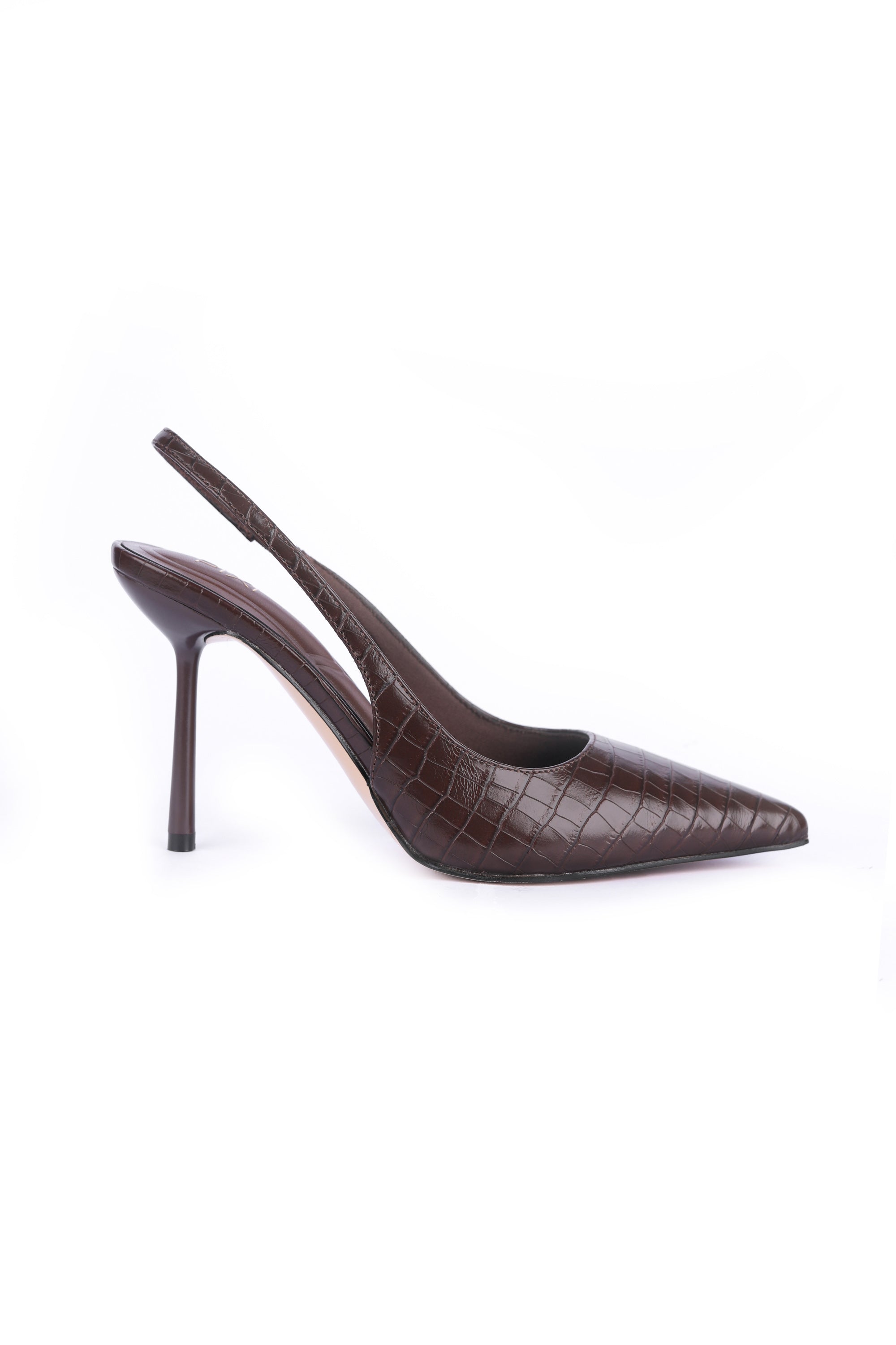 Code No.:01-5520 Slingback Pumps Ankle Strap , Stiletto Mid Heel Close Pointed Toe, leather , heel measures around cm