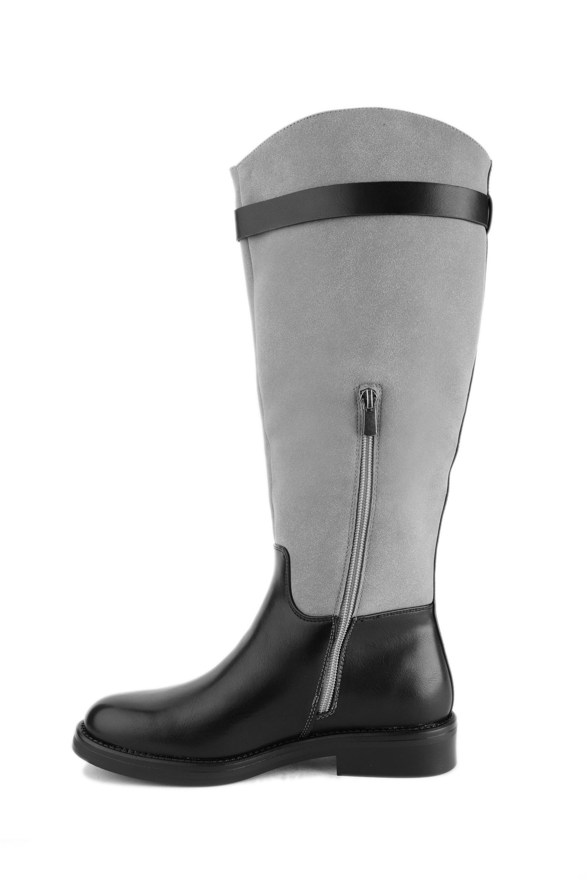 Code No.:01-5612 Woman's Leather & Suede Calf Underknee Boots rounded Toe , zip fastening aside , Pull-on styling , heel measures around cm