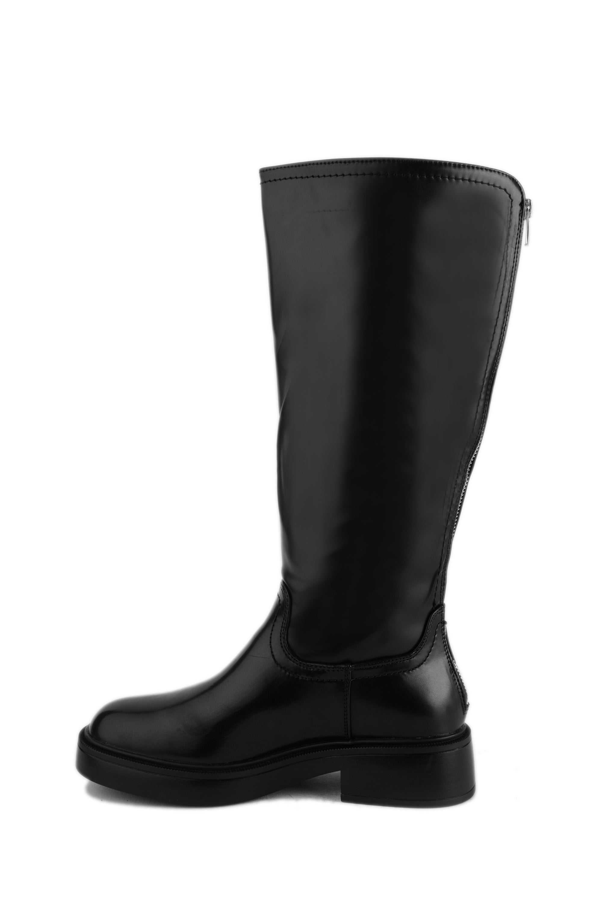 Code No.:01-5617 Underknee boot , basic leather material, zip fastening aside , Squared toe , heel measures around cm